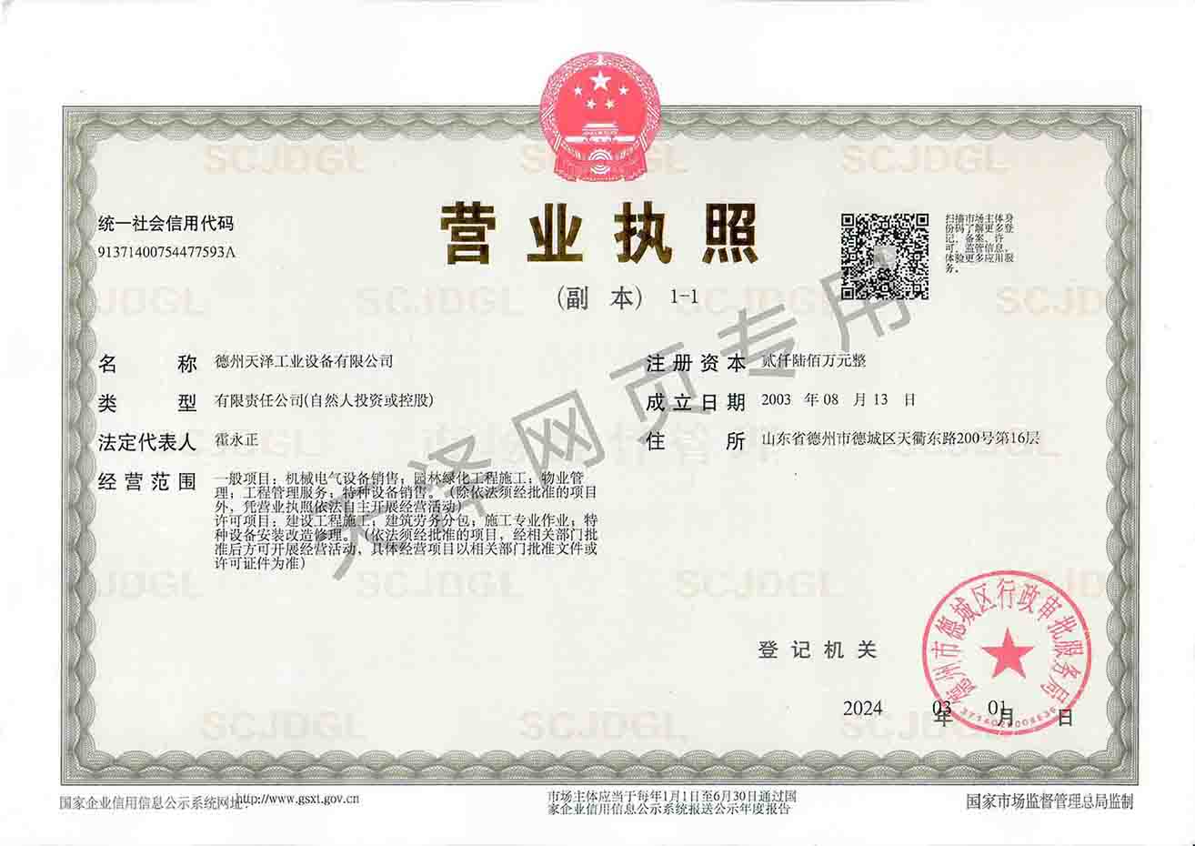 德州天澤工業設備有限公司成立于2003年(前身為德州天元集團天明工業設備安裝公司),經過20多年的發(fā)展,現成長為擁有職工600余人,各類專業技術人員近300余人,年生產能力兩億元以上,以建筑機電安裝工程、消防設施安裝工程施工為主,集建筑工程施工、市政工程施工、建筑智能化工程施工、園林綠化工程施工、工程管理服務、物業管理、電氣機械設備銷售等多元化經營于一體的綜合型企業。2005年,企業按照國際標準建立的質量管理體系,通過了ISO質量管理體系認證、環(huán)境管理體系認證、職業健康安全管理體系認證。施工工程遍布山東、河北、四川、江蘇等地,最具代表性的工程有:山東省德州市百腦匯資訊廣場機電安裝工程、德州經濟開發(fā)區天元大廈機電安裝工程、陵城區人民醫(yī)院機電安裝工程、德州金魯班大廈機電安裝工程、河北故城金辰小區機電安裝工程、北川地震災后援建工程等。多年來,公司始終堅持“以人為本,建精品工程,創(chuàng)行業品牌”的經營理念,先后榮獲。ㄊ校┘壧┥奖、天府杯、魯安杯等獎項,申報各種功法、多項專利。